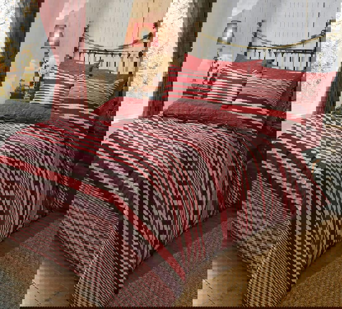 FLANNEL STRIPE Luxury Easy Care Duvet Cover Quilt Bedding Set with Pillowcase.