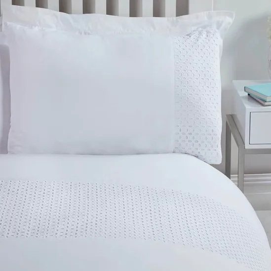 Lace Panel Band Border Luxury Soft Easy Care Duvet Cover Quilt Bedding Set with Pillowcase Treat your bedroom to a classic touch this season with this traditional offering. The duvet set and pillowcases feature a stunning decorative band, adorned with a beautiful lace design, creating a true statement bed.