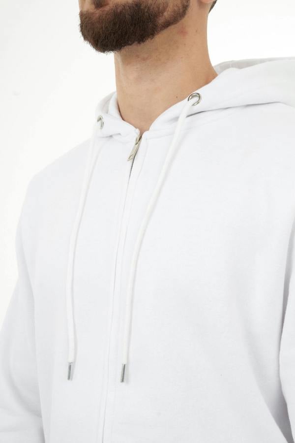 An adjustable drawstring hood and ribbed cuffs and hem give the finish a neat, secure feel, while the plain weave construction is suited to regular wear. Shown here in white for a crisp, versatile addition to a modern wardrobe.