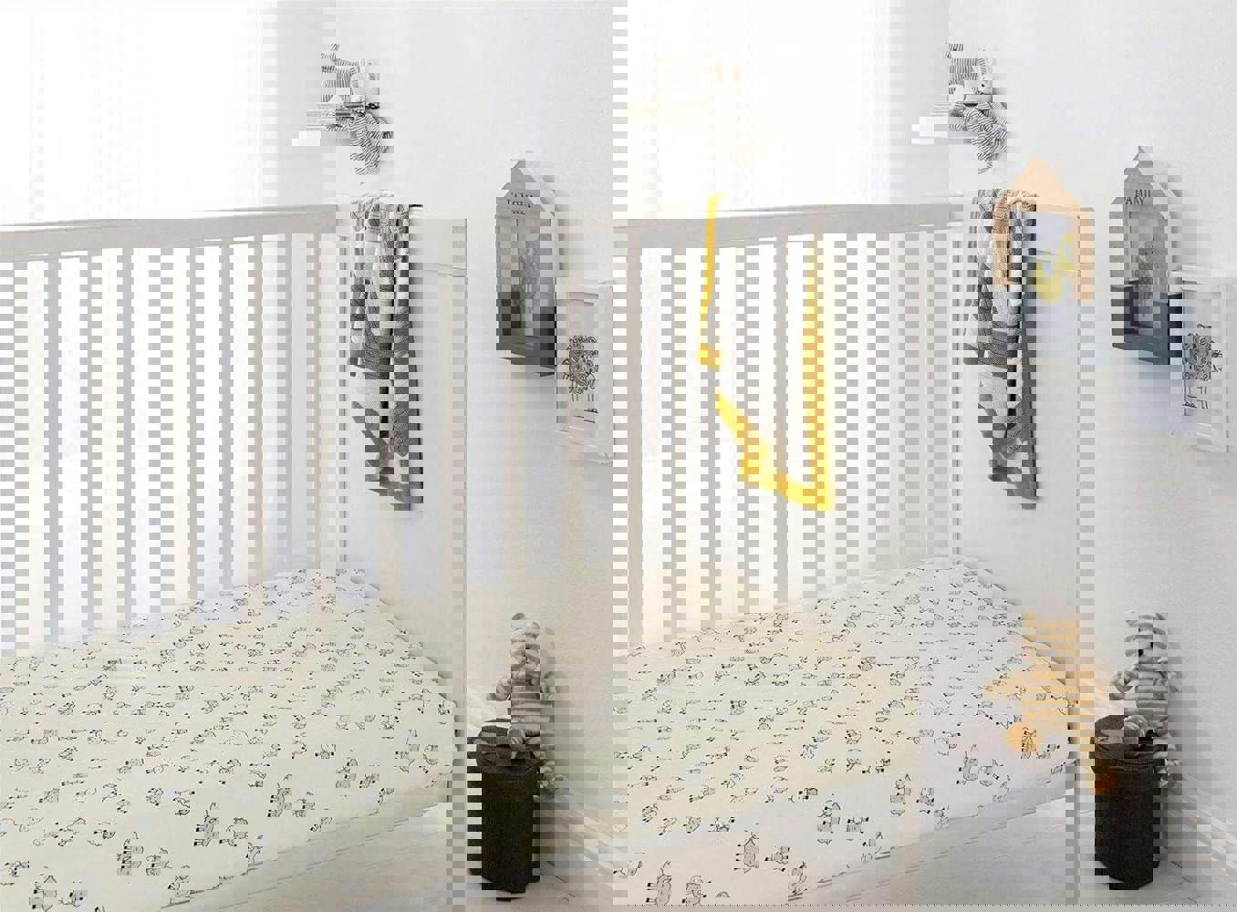 From Smart Living Nursery, the Sheep Crib Organic Cotton Fitted Sheet brings a playful cartoon finish to your baby’s sleep space, while keeping comfort at the forefront. Crafted from 100% organic cotton, it feels ultra-soft against delicate skin and remains breathable for everyday use.