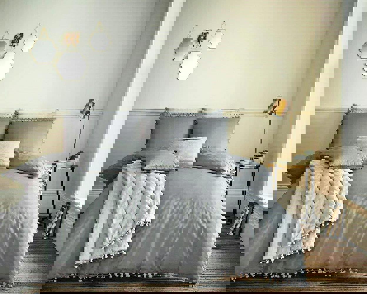 Smart Living Pom Pom Duvet Cover and Pillowcase Set - Charcoal