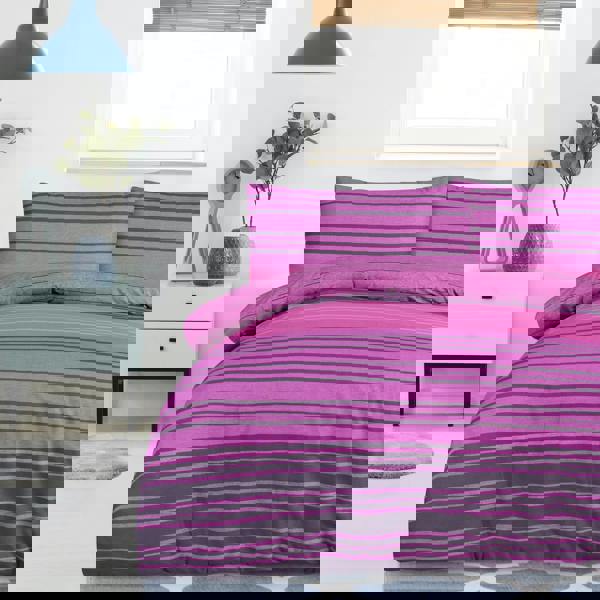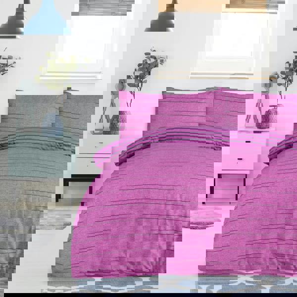 From Smart Living, this reversible polycotton duvet cover and pillowcase set brings a calm, considered look to the bedroom in a rich purple finish. The textured stripe design offers two looks in one, making it easy to switch up your bedding between washes without changing your overall scheme. Soft to the touch with everyday practicality, it’s designed for simple, fuss-free use.