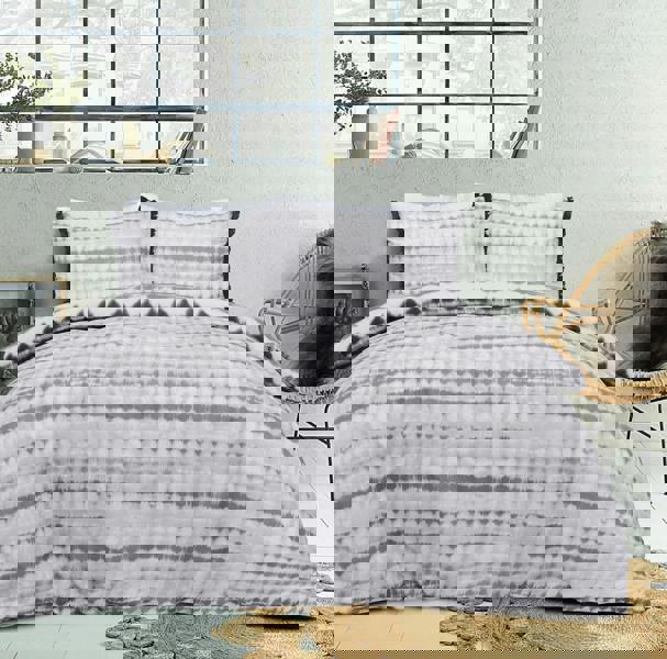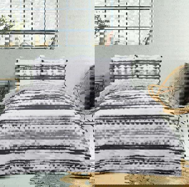 Smart Living Reversible Polycotton Tiedye Tassel Trim Duvet Cover and Pillowcase Set - Mono