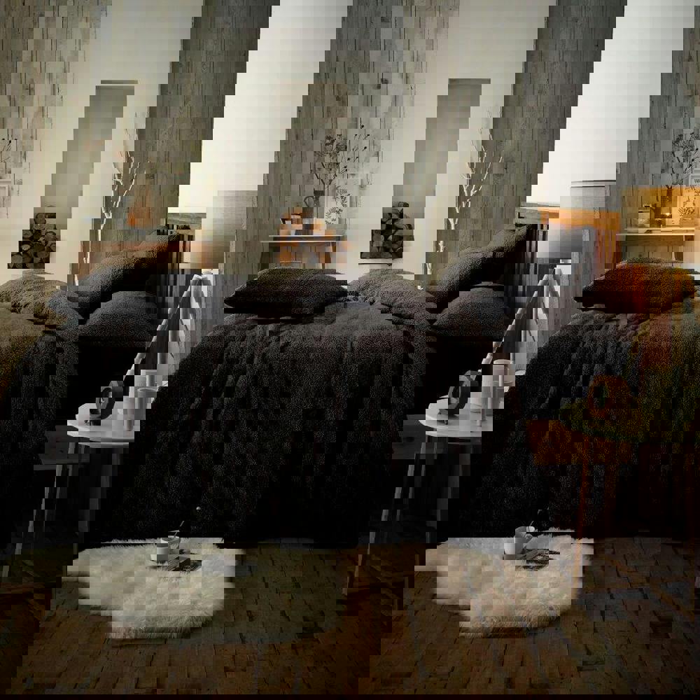 Smart Living Teddy Plain Duvet Cover and Pillowcase Set - Black