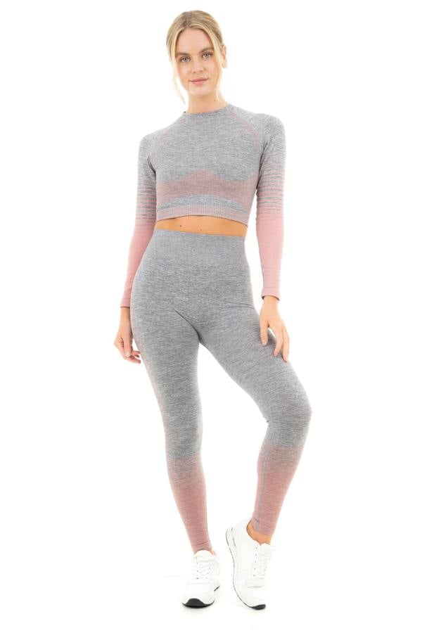 Smart Living Women's Gradient Stripe Seamless Long Sleeve Crop Top - Grey Marl / Pink