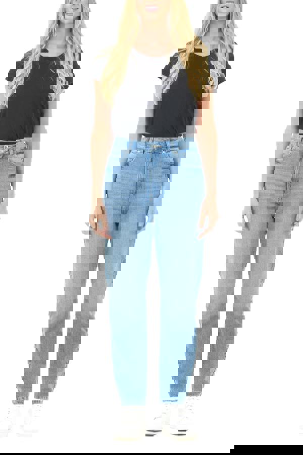 Smart Living Women’s High Rise Cotton Mom Jeans with Pockets – Casual Fit - Mid Blue bring a relaxed silhouette to everyday dressing. Cut in a high-rise shape, this mom-jean style suits casual wear across the week, from workdays to weekend plans.