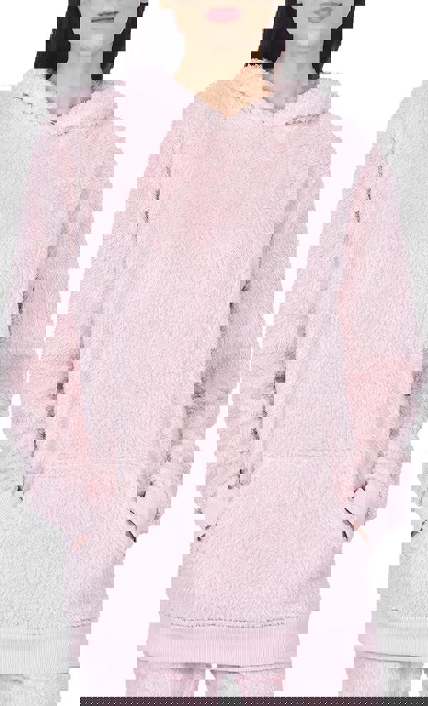 Wrap yourself in ultimate comfort and style with our Women’s Teddy Fleece Hoodie, the perfect blend of coziness and fashion. Crafted from 100% polyester, this hoodie offers a plush, ultra-soft feel that’s ideal for lounging at home or stepping out on casual errands. Its extra-length fit ensures full coverage and warmth, while the kangaroo pocket provides both functionality and a touch of laid-back style. Cuffed sleeves and a ribbed hem enhance its snug fit and chic appeal.
