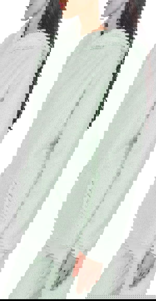 Wrap yourself in ultimate comfort and style with our Women’s Teddy Fleece Hoodie, the perfect blend of coziness and fashion. Crafted from 100% polyester, this hoodie offers a plush, ultra-soft feel that’s ideal for lounging at home or stepping out on casual errands. Its extra-length fit ensures full coverage and warmth, while the kangaroo pocket provides both functionality and a touch of laid-back style. Cuffed sleeves and a ribbed hem enhance its snug fit and chic appeal.