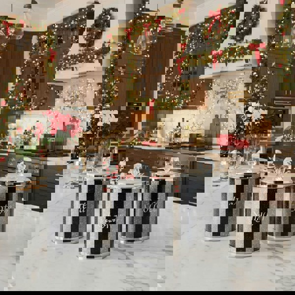 • Each container boasts a striking black and silver finish complemented by elegant crystal-style lids that catch the light beautifully.