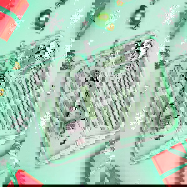 Packaged in a sleek green leather case, this kit is a perfect travel accessory and a thoughtful gift for all ages.