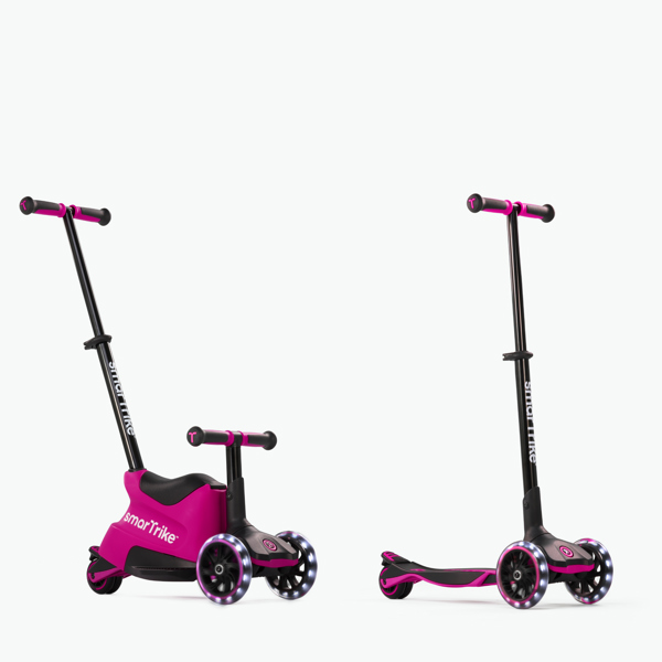 Initially equipped with a comfortable seat and detachable parent handle, it provides caregivers with control and little ones with confidence. Later, the handle is removed for independent ride-on fun. The patented extendable footplate and adjustable handlebars allow the scooter to perfectly fit older children. Motion-activated LED front wheels and a lightweight magnesium frame (often) ensure a smooth, safe, and exciting ride for years to come.