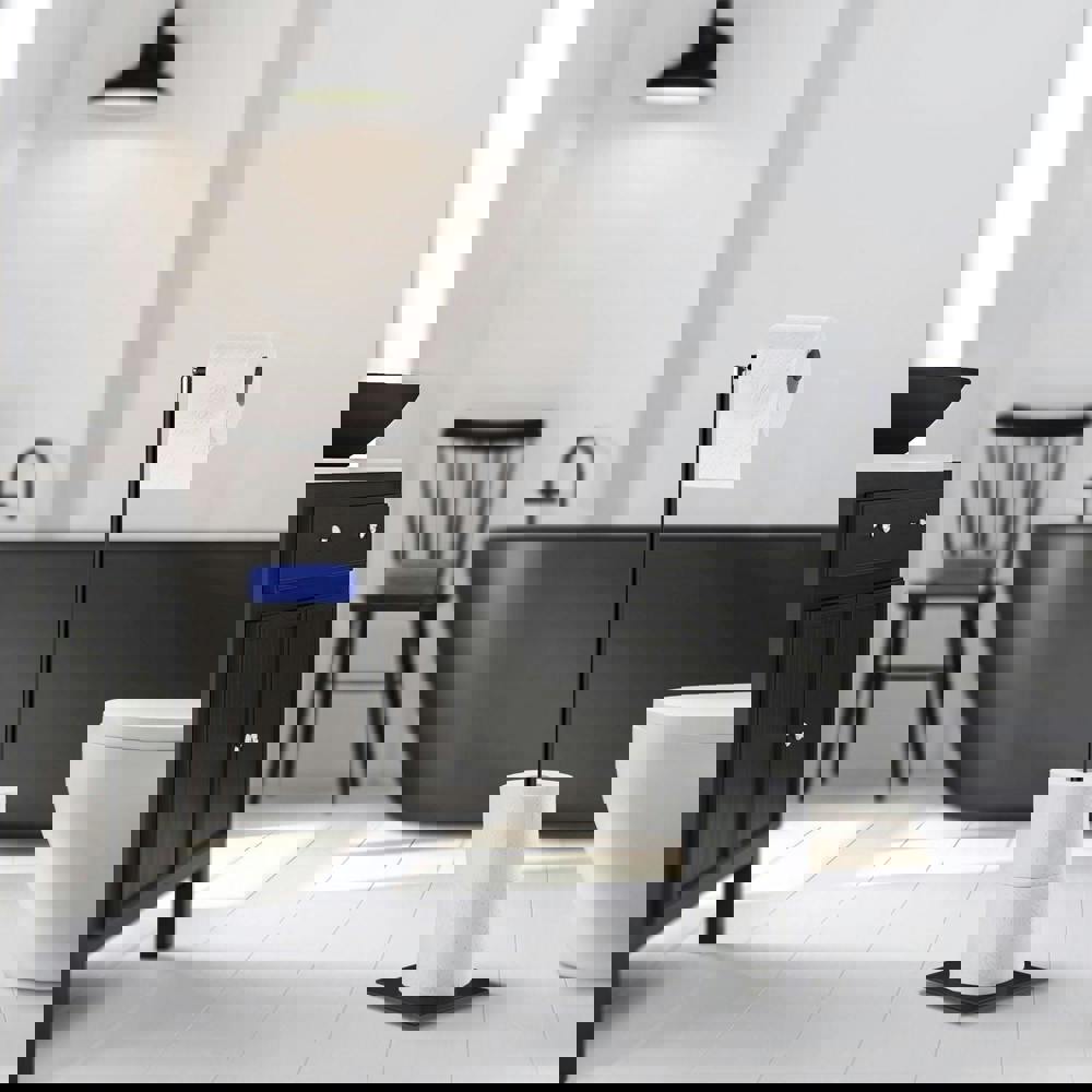 The Smedbo Outline Lite Freestanding Toilet Roll Holder is a black stainless steel toilet roll holder designed for use in the bathroom. With a free-standing design, it can be positioned where you need it without wall mounting, making it a practical choice for updating an existing space or adding convenient toilet roll storage.