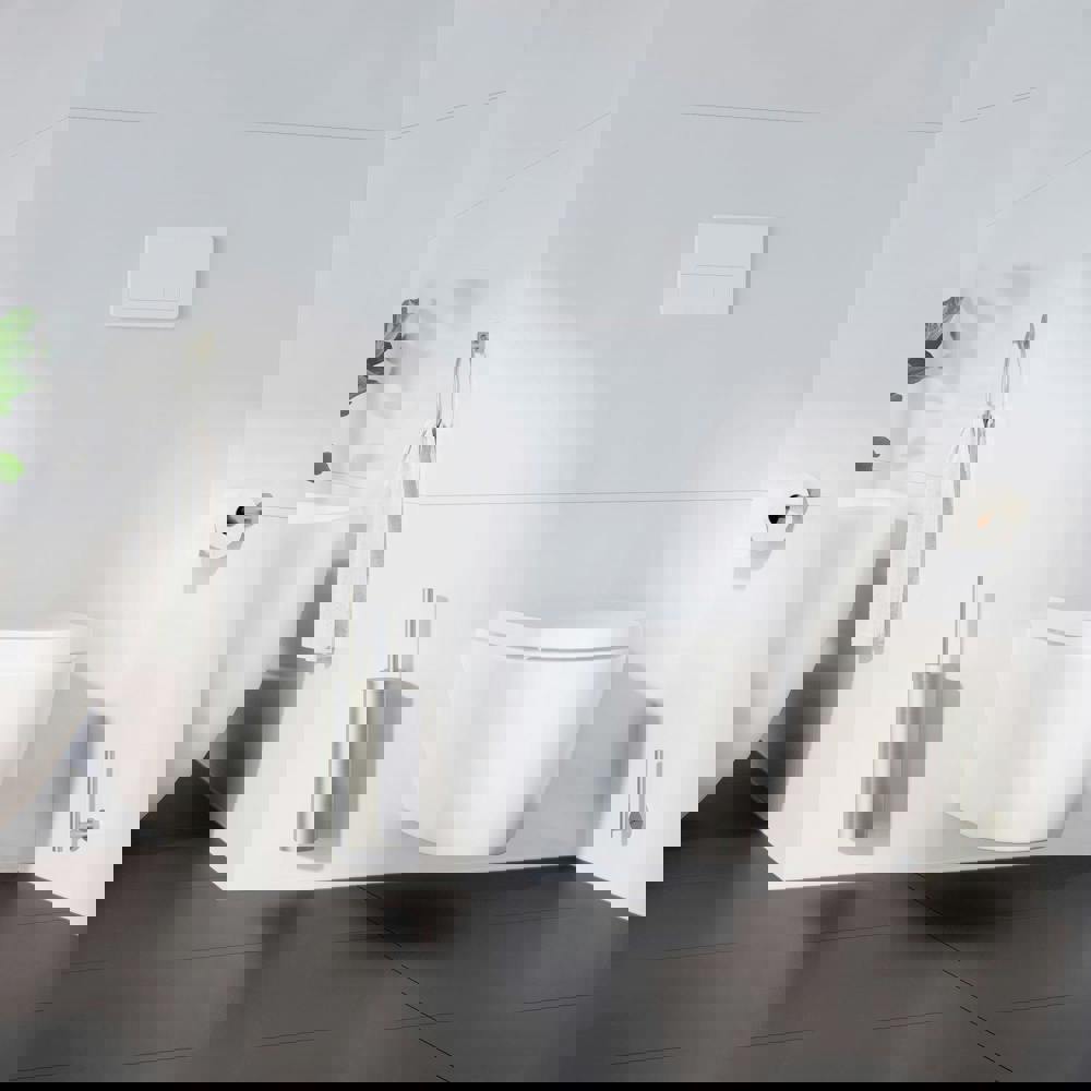Made with a solid brass core, this toilet roll holder is supplied with a 10-year warranty. It features hidden mounting for a neat finish and is designed to be fixed in place using the included screws.