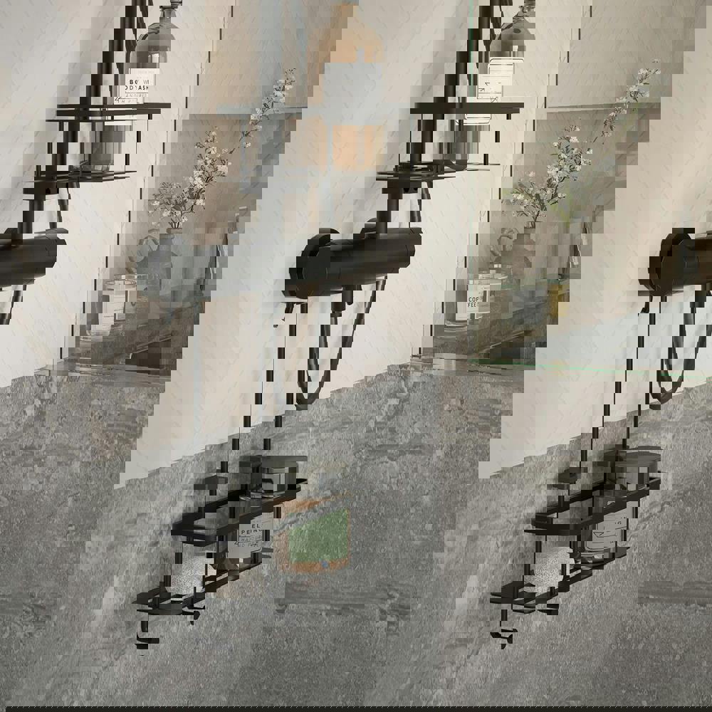 With a shower basket you get a stylish and fresh impression hen you get all your showe products up from the floor. Under the shelf there are two practical hooks for hanging a foot file, scrubbing sponge or other accessories.