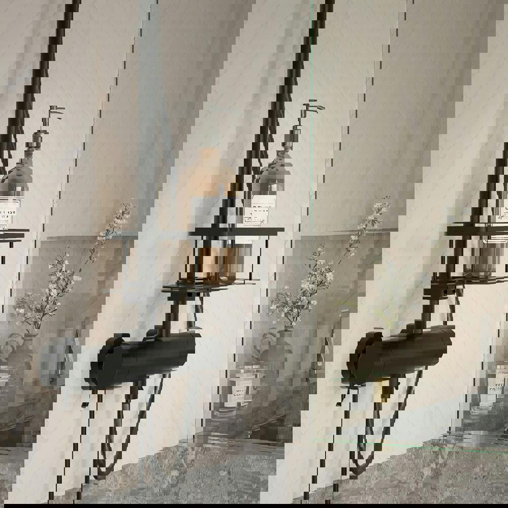 Black stylish shower basket for shower rail made with a core of stainless solid brass. The shower basket has a nice matt black surface and you mount it easily by screwing it onto your shower rail. By attaching the shower basket around the shower rail, there is no need to drill into the sensitive wet area.