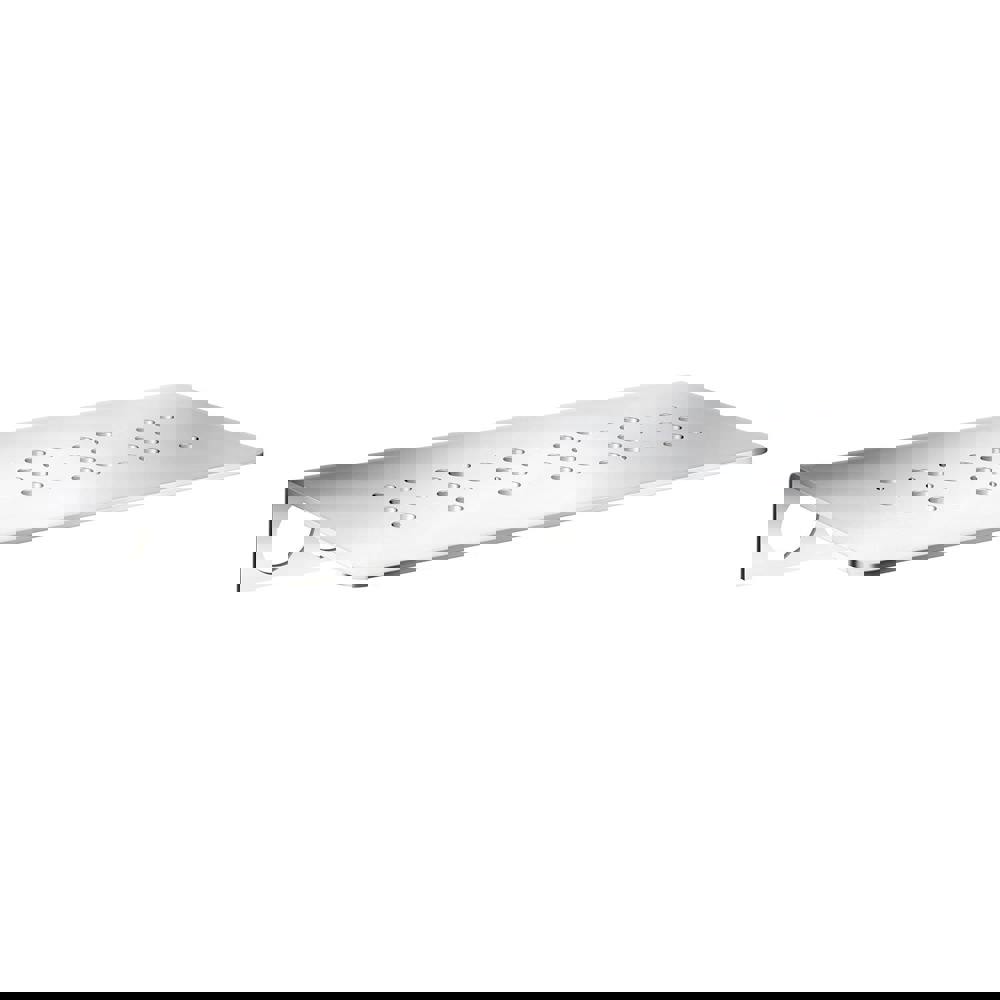 SIDELINE - Grout Line Shelf, with holes. Polished Stainless Steel. 100 x 250 mm.