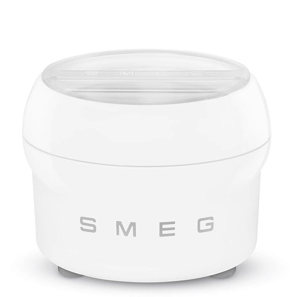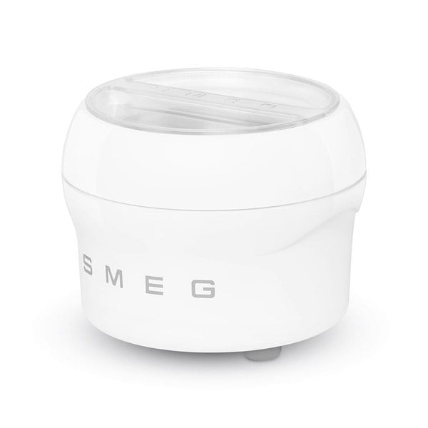 Ice cream maker accessory suitable for ice cream, sorbets and frozen yogurt. Refrigerated container with double-walled stainless steel accumulation cooling system, with paddle and lid. Production up to 1. 1 Lt of ice cream, sorbets, granitas in about 20-30 minutes. Compatible only with SMEG Stand Mixers with stainless steel bowl SMB401 or SMB404.