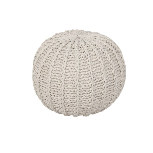 Stylish and soft footstool or seat – hand-knitted charm for any room.