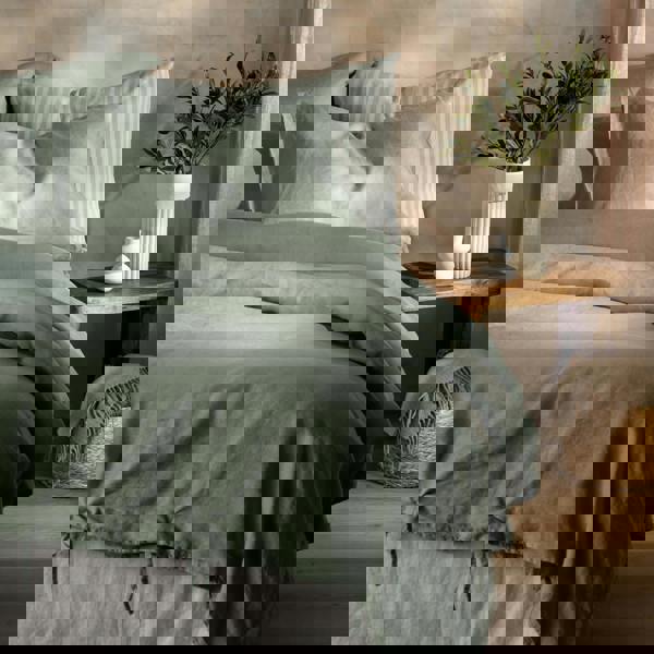 Our misty green linen duvet covers combine breathable softness with contemporary style, completed with our elegant tie closures