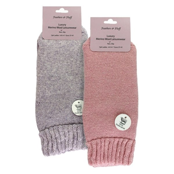 2 Pack Ladies Merino Wool Slipper Bed Socks - Assorted Colours