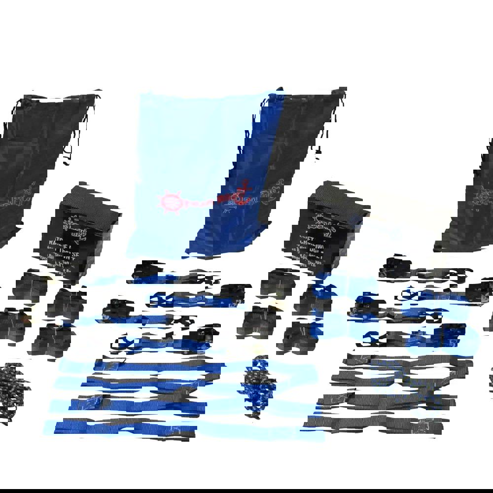 This complete set of Lashing Equipment is ideal for securing your motorcycle or cargo and it is perfect for storing in the boot of a vehicle, ready for use when it's needed. Included with this amazing Gift Set is 4 Soft Tie Down Loops, 4 Heavy Duty Ratchet Straps with S Hooks and Ratchet Handles and 2 Bungee Cords with hooks. A handy draw string storage bag is also included to keep the equipment safe and everything comes supplied in a gift box.