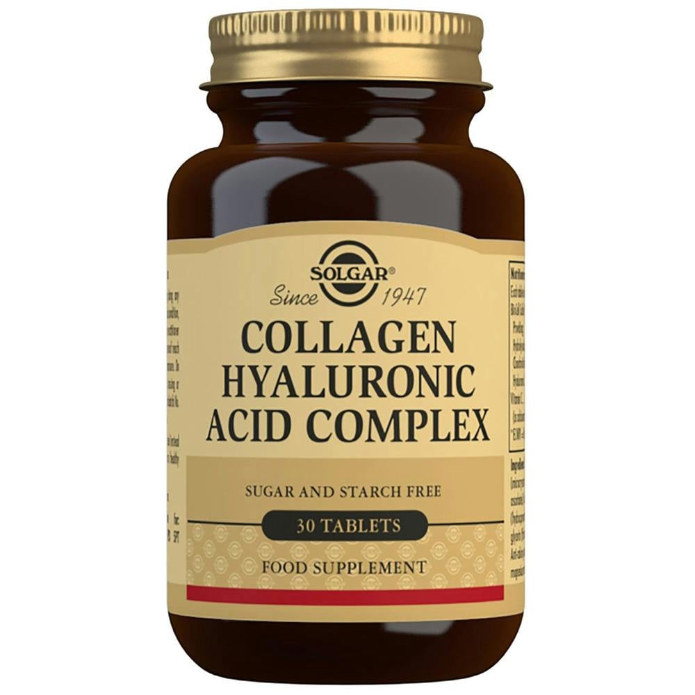 From Solgar, the Specialty Collagen Hyaluronic Acid Complex Tablets are a daily food supplement formulated with BioCell Collagen II™ and vitamin C. Combining collagen and hyaluronic acid with vitamin C, the complex is designed to support skin from within. Vitamin C contributes to normal collagen formation for the normal function of skin and contributes to the protection of cells from oxidative stress.
