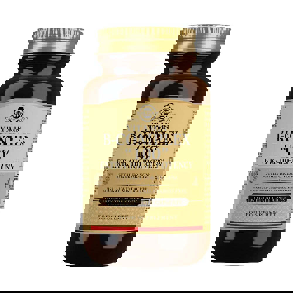 An extra high potency vegan formulation delivering a 100mg dose of key B vitamins. Solgar's unique formula delivers Thiamine (B1), Riboflavin (B2), Niacin (B3), Pantothenic Acid (B5), and Vitamin B6, along with other B vitamins such as Folic Acid, Biotin (B7) and Vitamin B12. B vitamins are essential nutrients required by the body. They help our bodies convert food into energy, allowing us to stay energised throughout the day, as well as supporting our mental performance. Many B vitamins are interdependent, therefore it is best to take them in combination through a B-complex or a multiple vitamin containing a B-complex.