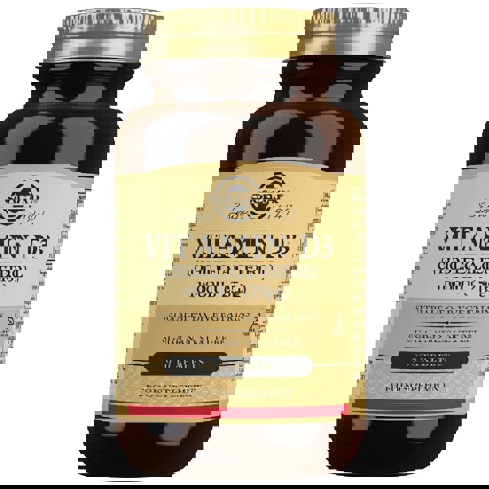 From Solgar, Vitamin D3 (Cholecalciferol) 1000 IU (25 µg) Tablets offer a premium way to supplement vitamin D in the D3 form, described as the easiest for the body to use. Often referred to as the “sunshine vitamin”, vitamin D is a fat-soluble vitamin required to promote calcium absorption, helping to maintain healthy bones and teeth, while also contributing to the normal function of the immune system and normal muscle function.