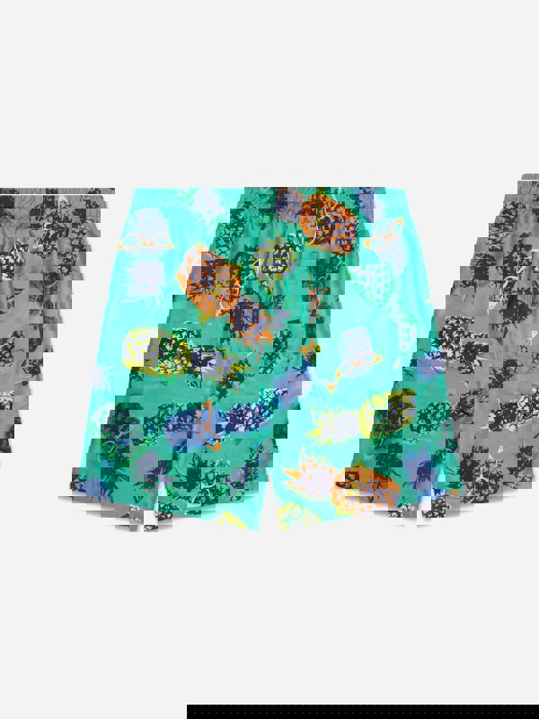 Soli Swim boys pineapple swim shorts in green with UPF50+. The all-over pineapple print adds a bold, playful look for beach and pool days. Made from lightweight material for comfortable wear.