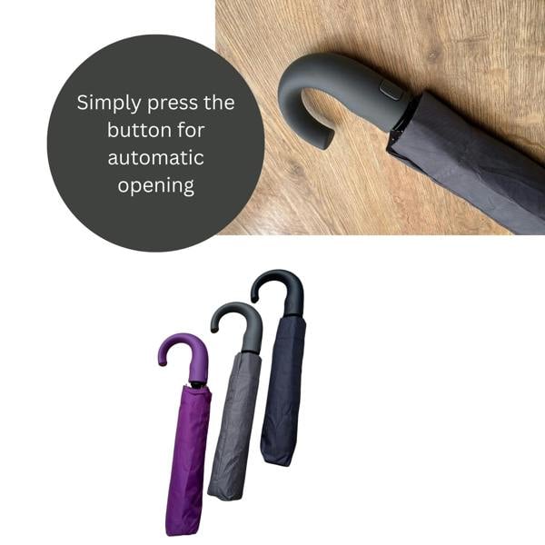 Automatic Curved Handle Compact Umbrella – 33cm Folding One-Touch Open Travel Umbrella
