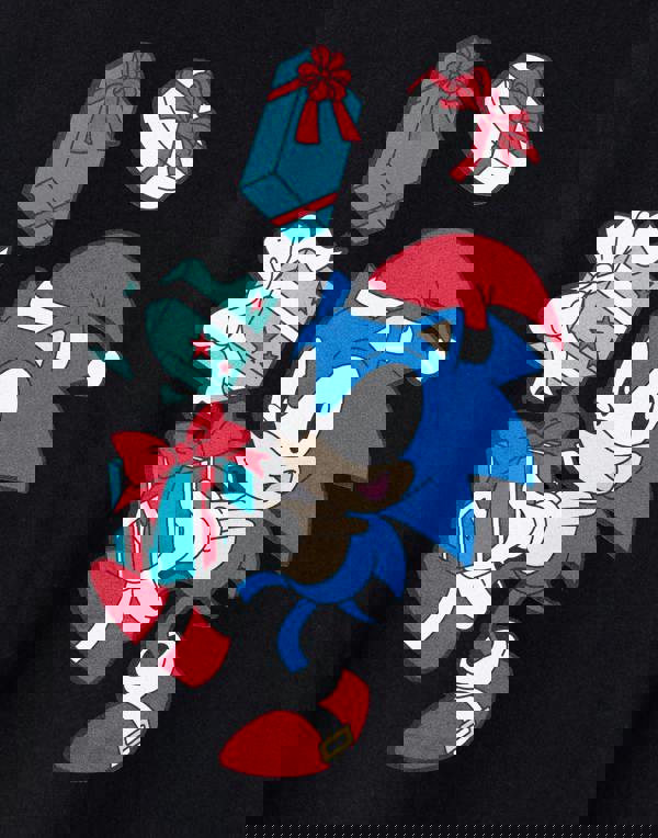Embrace the holiday spirit with the Sonic the Hedgehog Boys' Black Christmas Presents T-Shirt