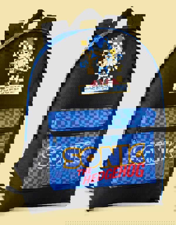 Featured across the front of the bag is an awesome print of the fan favourite gaming icon Sonic, standing on a plaque saying 'Class of 1991', underlined with the Sonic The Hedgehog logo print on the front pouch pocket