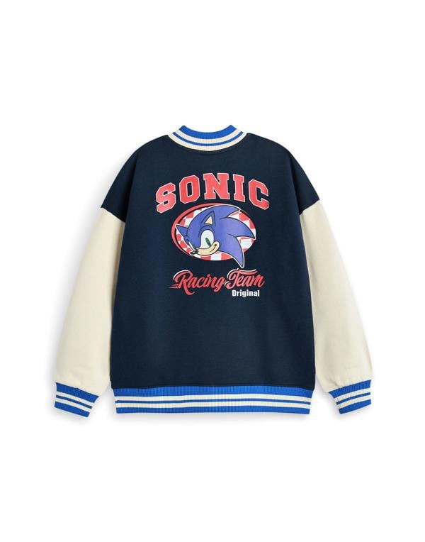 For any young Sonic fan who's always in a rush, this Sonic the Hedgehog Boys Bomber Jacket is the perfect way to show off their racing spirit! Featuring a cool checkered flag graphic and Sonic's iconic racing team design, this blue varsity jacket is a nod to the retro Sega video games we all know and love