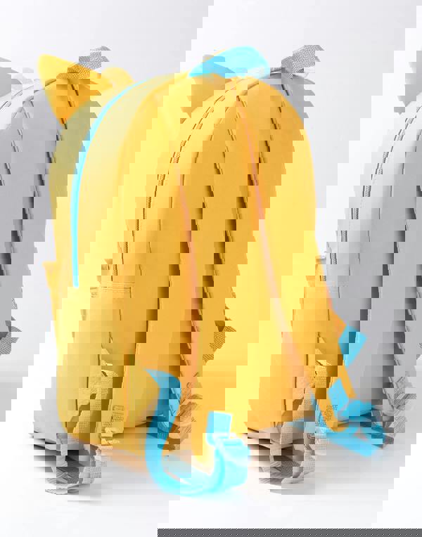 The bag showcases a bright yellow and blue colour scheme, drawing attention with its playful design