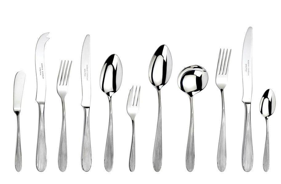 52 piece Sophie Conran 'Dune' cutlery set for 6 people presented in a stylish gift box - comprises 6 table knives, 6 table forks, 6 dessert knives, 6 dessert forks, 6 dessert spoons, 6 soup spoons, 6 tea spoons, 6 pastry forks, 2 table/serving spoons, 1 cheese knife and 1 butter knife. Made from the finest grade, 18/10 stainless steel, mirror finish.