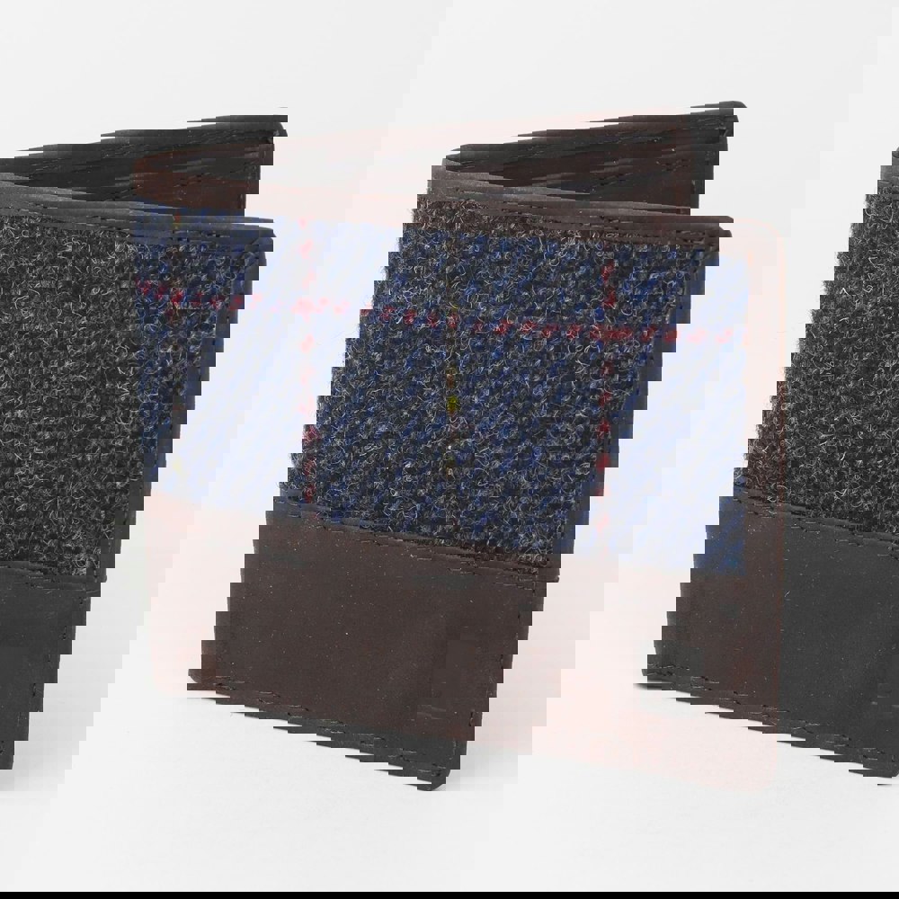 The classic brown Harris Tweed pattern of tans and browns with a hint of blue, blends perfectly with the dark reddish-brown leather, creating a distinctive look of English heritage. Perfect as a gift to be cherished or to treat yourself, this wallet ensures long-term durability due to its highest-quality materials.
