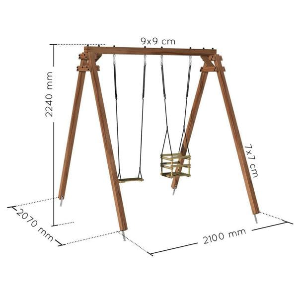 The Ambre Infant and Child Double Wooden Swing Set is an ideal outdoor play solution designed to delight children of various ages. Featuring both a single swing and a baby swing, it offers versatile enjoyment for infants and older children alike. Crafted from dip treated timber, this swing set boasts durability and resilience against the elements, ensuring long lasting use. Suitable for children ranging from 6 months to 12 years old, it provides a safe and enjoyable way for children to experience the joy of swinging. Constructed from Scots Pine timber, this swing set combines natural charm with robustness, promising years of outdoor fun for children of all ages.