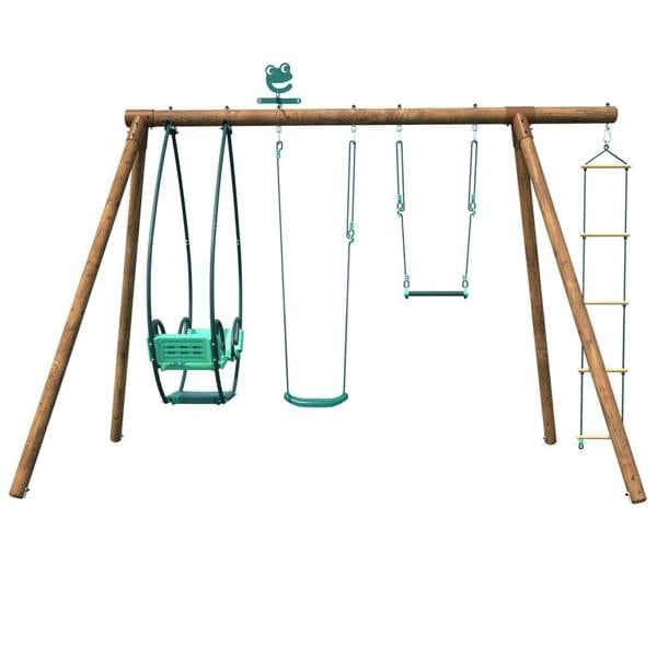 Juliet Triple Wooden Swing Set with Rope Ladder