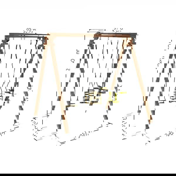 Introducing the Pierre Infant and Child Triple Wooden Swing Set, a versatile and exciting addition to any outdoor play area. This swing set features a swing seat, a baby swing seat and a seesaw, offering a variety of swinging and rocking experiences for children of all ages. Crafted from dip treated Scots Pine timber, it ensures durability and protection against outdoor elements, guaranteeing long lasting enjoyment. Suitable for children aged 6 months to 12 years, it provides a safe and entertaining space for kids to play and interact. With its combination of quality craftsmanship and versatile design, the Pierre swing set promises hours of outdoor fun and adventure for children of all ages and stages of development.