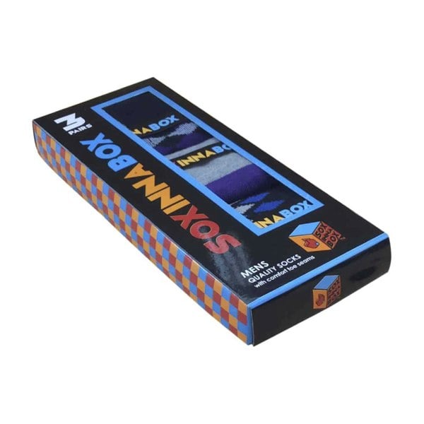 In this offer, you will receive 6 pairs in the colours of choice. With 4 style options to choose between we hope that you will find the vibrant funky patterned style that you have been looking for. They are presented in a gift box and are organised by pair by a novelty 'soxinnabox' strap.