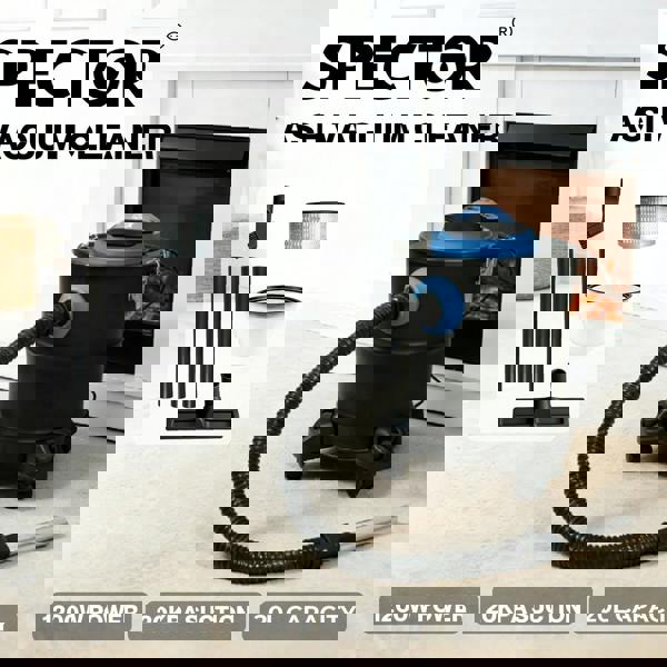 The Spector 1200W Ash Vacuum Cleaner is designed for powerful and safe removal of ash sawdust and debris from fireplaces wood burners and BBQ areas. Featuring a robust 20L fire-resistant metal tank and strong 20KPA suction power this vacuum delivers reliable performance for household and workshop cleaning tasks.