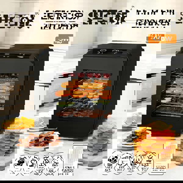 Discover a faster and easier way to make healthy homemade snacks with the Spector Food Dehydrator. Engineered for consistent performance this 400–450W food dehydrator uses a rear-mounted fan to deliver steady hot-air circulation across its six BPA-free stainless steel trays. Whether you’re preparing dried fruits beef jerky vegetables or pet treats the Spector dehydrator ensures thorough and even drying every time.
