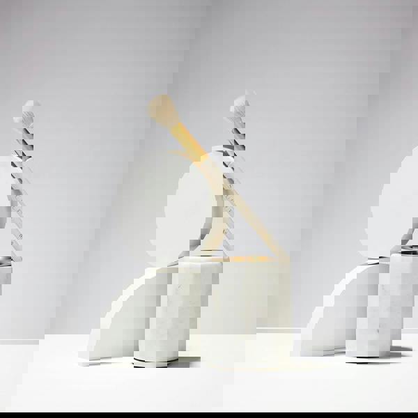 Made with bespoke Luxture synthetic fibres, the bristles are engineered to mimic the feel and performance of animal hair. The fibres have also undergone an anti-bacterial treatment to inhibit the reproduction of bacteria on the surface of the brush fibres. Hand-crafted with an FSC glossy wooden handle and a copper ferrule in a gently brushed gold finish, it balances considered design with everyday usability.
