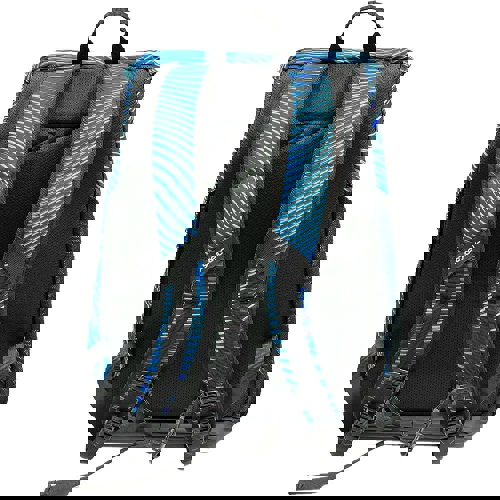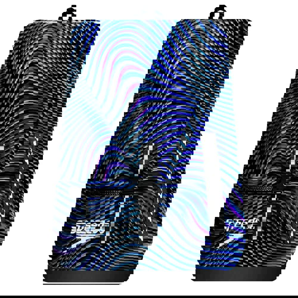 This 35L Team Backpack Print from Speedo, combines practical design with swimmer-specific functionality. Featuring a dynamic wave pattern in blues, purples and black to the front of the rucksack and on the straps. The main compartment features a removable, water-resistant kit bag that effectively separates wet and dry belongings, whilst the padded laptop sleeve with secure closure accommodates school essentials alongside swim gear. A water-resistant base shields contents from damp pool environments. Multiple storage options—including a generous side water bottle pocket, concealed zipper pocket, and front zip compartment—ensure systematic organisation. The customisable front panel allows teams to display their colours and create a unified look.
