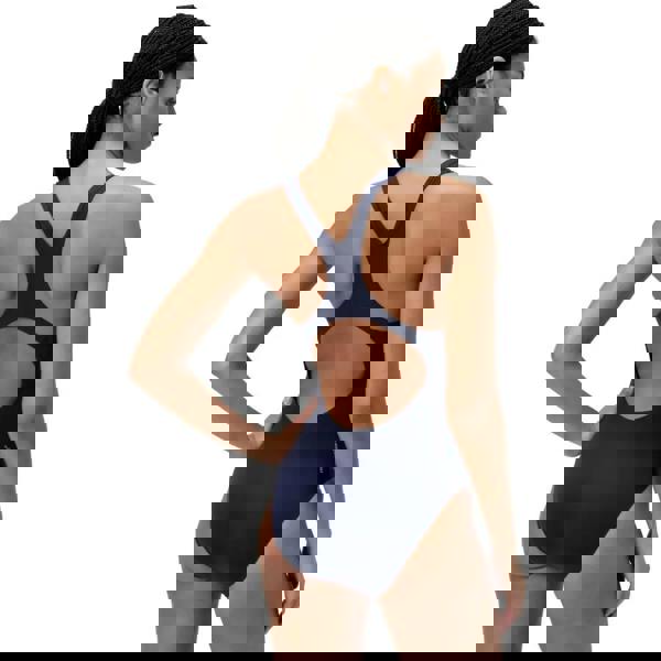 The Digital Placement Medalist Swimsuit from Speedo features a stunning digital print down the sides of this swimsuit in blues on a stylish background of dark navy. The classic medalist swimsuit aids shoulder movement during swimming training, it has a supportive elastic underband and PBT liner to help minimise bust movement. This quick-drying swimsuit is made from Endurance+ Max fabric and offers high chlorine resistance and durability, so you can swim-wash-repeat.
