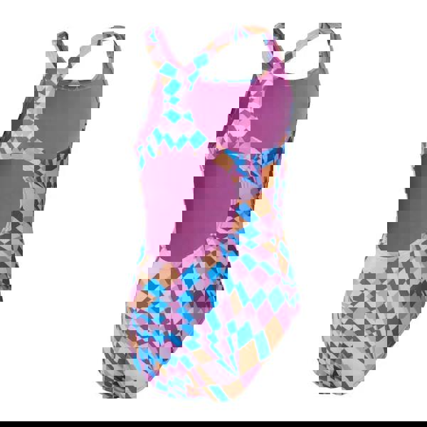 The Girls Allover Medalist Swimsuit from Speedo features a geometric print in soft sunset colours. This swimsuit offers a medalist design which aids shoulder movement and flexibility for comfort during your swim. Designed to be durable, it is made from EnduraBrite fabric and provides high chlorine resistance.