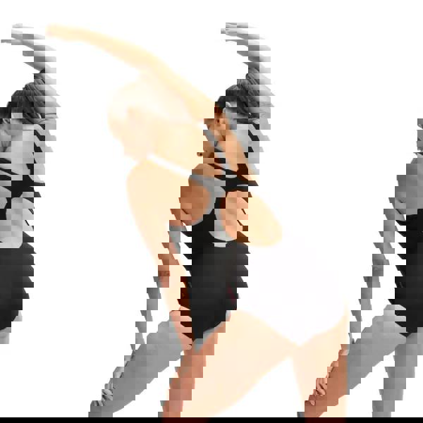 The Hyperboom Placement Muscleback Swimsuit from Speedo features Speedo's distinctive Hyperboom logo in striking shades of pink and grey on a black background. The Muscleback style provides great flexibility and freedom of movement and is front-lined to provide modesty and provide some support. Made from chlorine-resistant Endurance+ fabric, this swimsuit is 100% chlorine-resistant and quick drying.