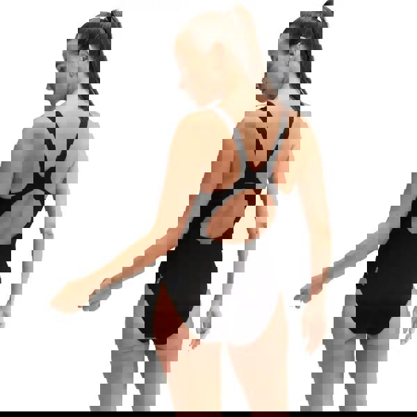 The Placement Muscleback Swimsuit from Speedo features an abstract curved panel graphic in constructing blue. The muscleback style includes medium neck and leg height with an open back, providing flexibility and comfort during your swim. Made from ECO Endurance+ fabric, the swimsuit is 100% chlorine-resistant and durable making it perfect for regular swimming sessions.