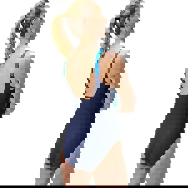 The Shaping Contour Eclipse Swimsuit from Speedo pairs a square neckline with a contrasting blue bust to drw the eye upwards and flatter your shape. The Shape Comprex fabric delivers all-over shaping, while supportive seams and shaping fabric offer medium bust support. The adjustable straps provide a great and tailored fit.