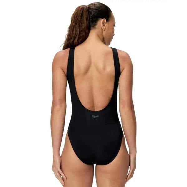 Engineered for serious swimmers, this black high-neck design from Speedo combines performance with practical support. The innovative shoulder-free strap system maximises freedom of movement, while the structured shelf bra with removable cups provides customisable shaping. Built with XLANCE® technology, the fabric resists chlorine degradation and maintains its integrity through intensive training sessions. Enhanced UPF50+ sun protection ensures durability against both pool chemicals and UV exposure, making this an investment piece for dedicated lap swimmers.